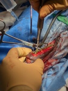手術は問題なく終了し、術後の経過も良好です。現在は安静管理とリハビリを行いながら、骨の癒合を慎重に確認しています。