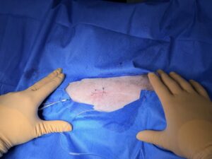 一般的な開腹手術では、お腹を大きく切開しますが、当院では 腹腔鏡を使い、最小限の切開で手術を行いました。