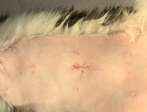 海外の獣医学論文では、従来の開腹による膀胱切開術(cystotomy)では、約20%で結石の取り残しが認められたと報告されています。